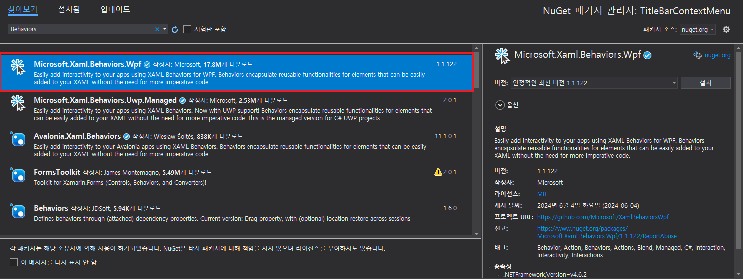 WPF Title Bar(타이틀바)에서 마우스 우클릭하면 기본 ContextMenu(컨텍스트 메뉴)가 표시된다.기본이 아닌 Custom ContextMenu를 생성하는 방법에 대해 배워보자. Behavior 생성1. Microsoft.Xaml.Behaviors.Wpf Nuget 패키지 설치 2. Window Behavior 생성하기public class ContextMenuBehavior : Behavior { private const uint WM_NCRBUTTONDOWN = 0xa4; private const uint HTCAPTION = 0x02; private Window window; protected override void OnAttac..