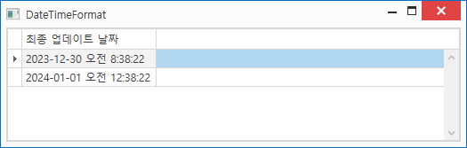 <dxg:GridColumn FieldName="LastUpdateTime" Header="최종 업데이트 날짜" Width="150"/>