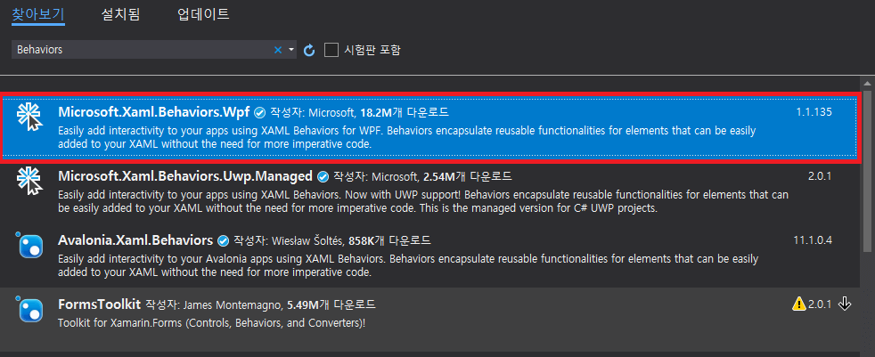 WPF ListView SelectedItem 자동 스크롤하는 방법에 대해 배워보자. Behavior 생성1. Microsoft.Xaml.Behaviors.Wpf Nuget 패키지 설치 2. ListView Behavior 생성ListView의 Loaded, SelectionChanged 이벤트 발생 시 선택된 첫 번째 아이템으로 스크롤한다.using Microsoft.Xaml.Behaviors;using System.Collections;using System.Windows;using System.Windows.Controls;namespace ListViewSelectedItemScroll{ public class ScrollToListViewSelectedItemBehavior : Behavi..